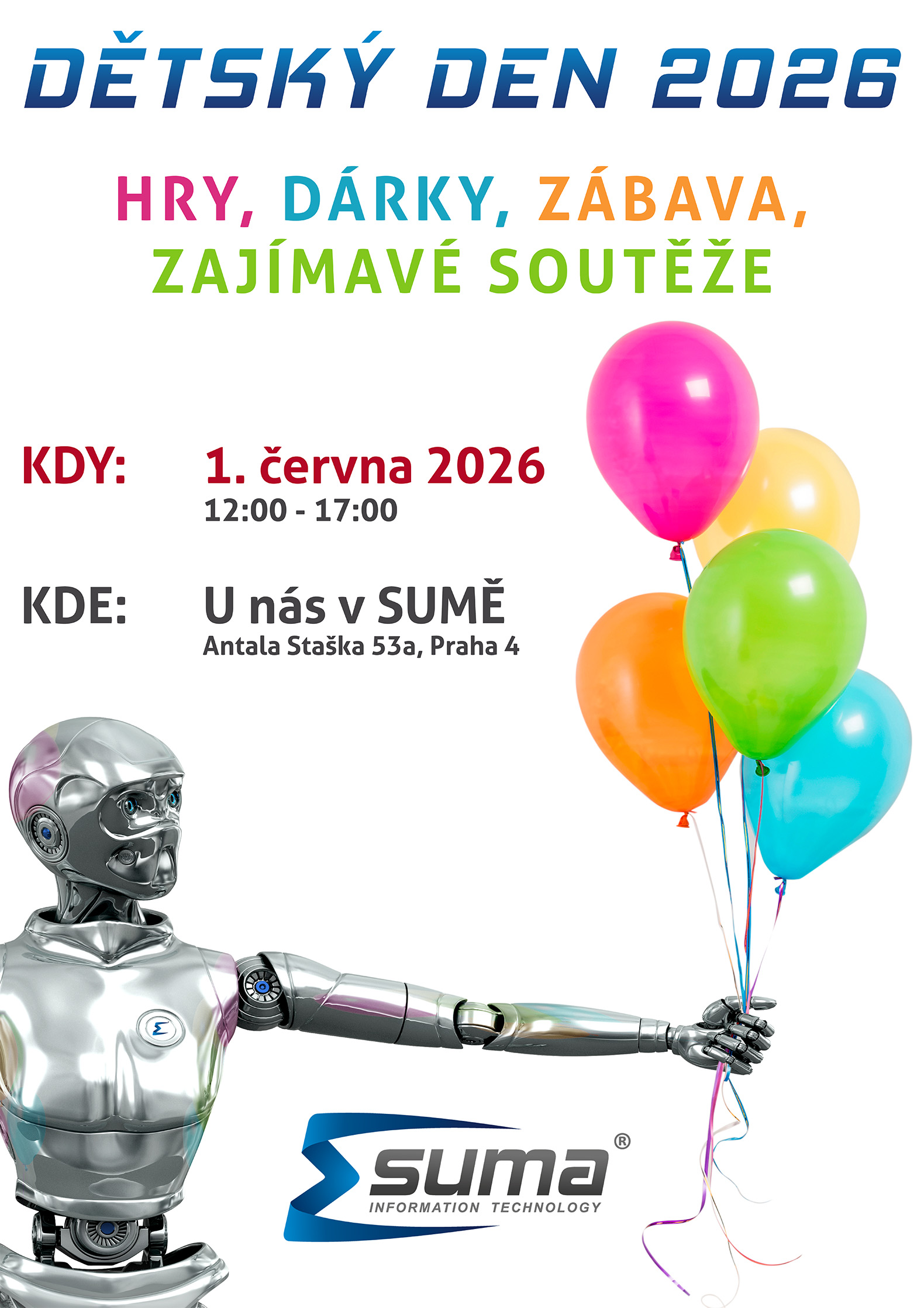 Přijďte si užít již tradiční oslavu dne dětí u nás v SUMĚ. Všichni jste srdečně zváni!